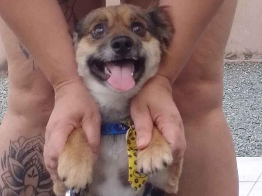 Cachorro pequeno, 1 ano, SRD-ViraLata, cor Preta/Marrom.