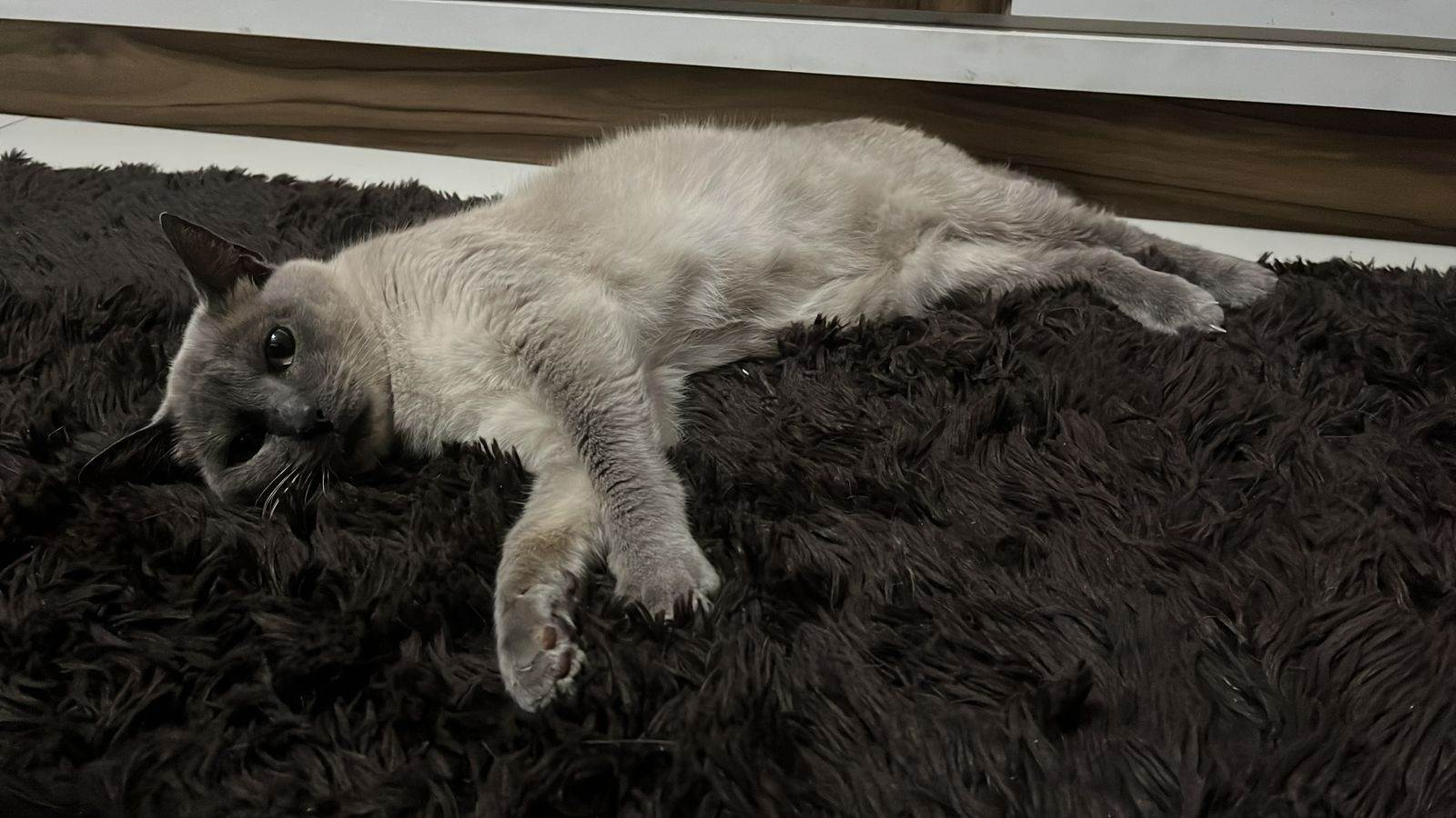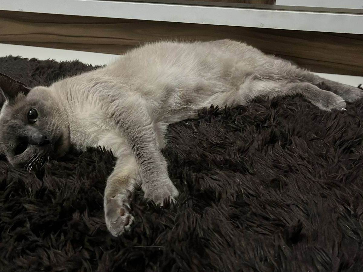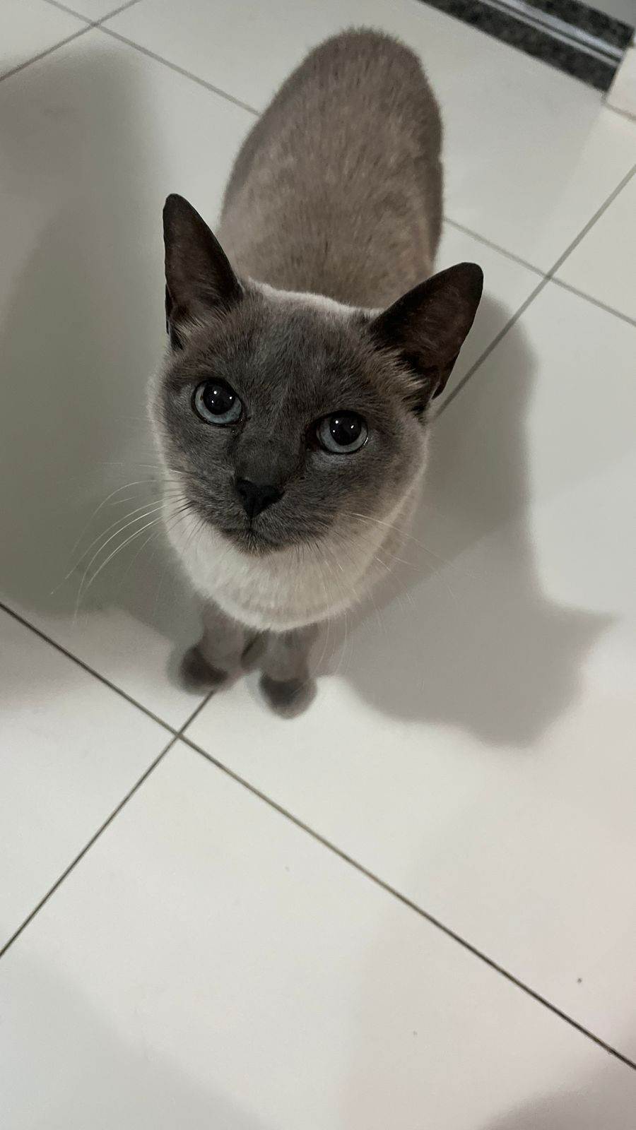 Gata com cerca de 10 anos, muito sociável e carinhosa, bem preguiçosa, acostumada com apartamentos, pelagem cinza e olhos azuis. Fica sozinha tranquilamente durante o dia, é acostumada a dormir comigo (é bem manhosa), e foi criada com outra gatinha, ambas se dão muito bem.