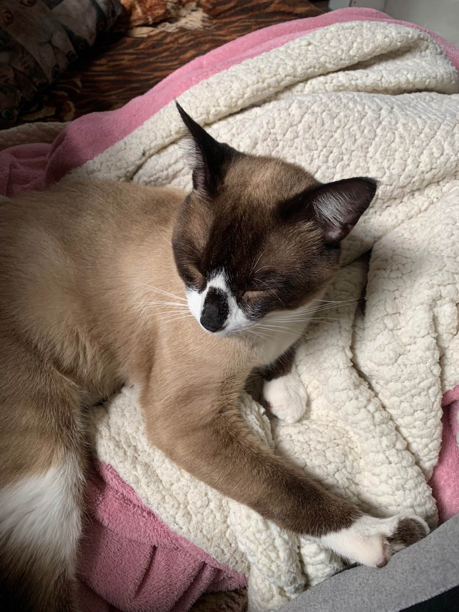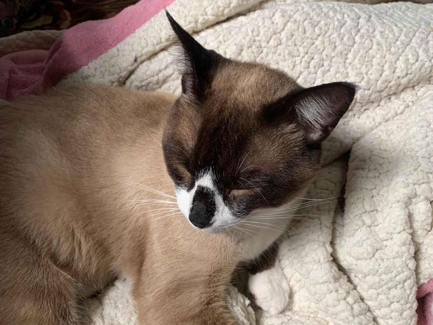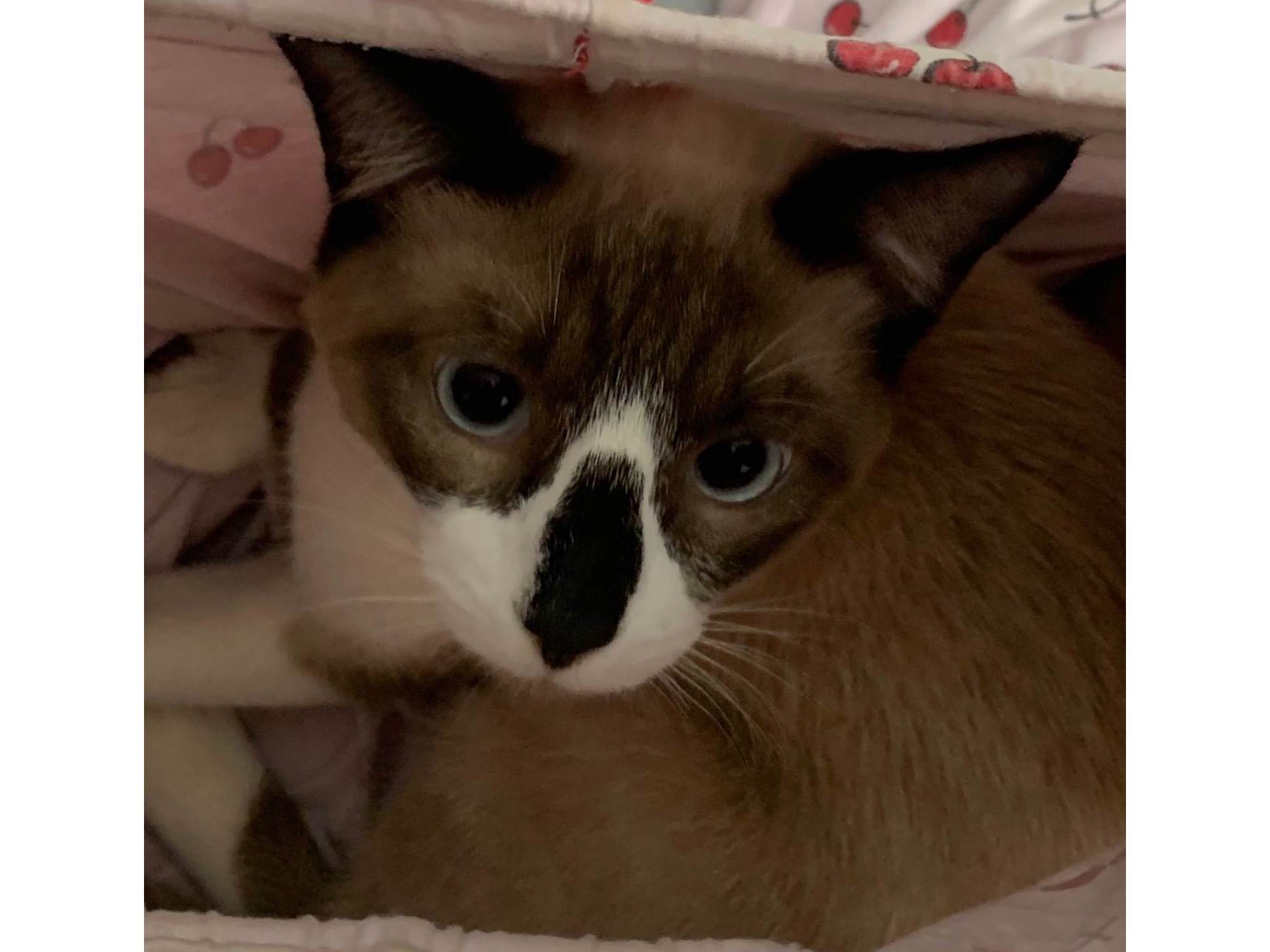 Gato grande, 1 ano, Siamês, cor Branca/Preta.