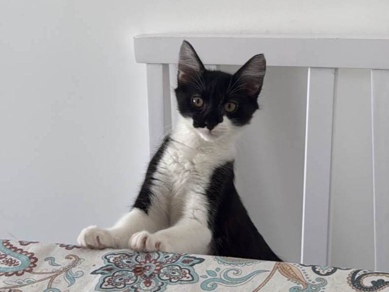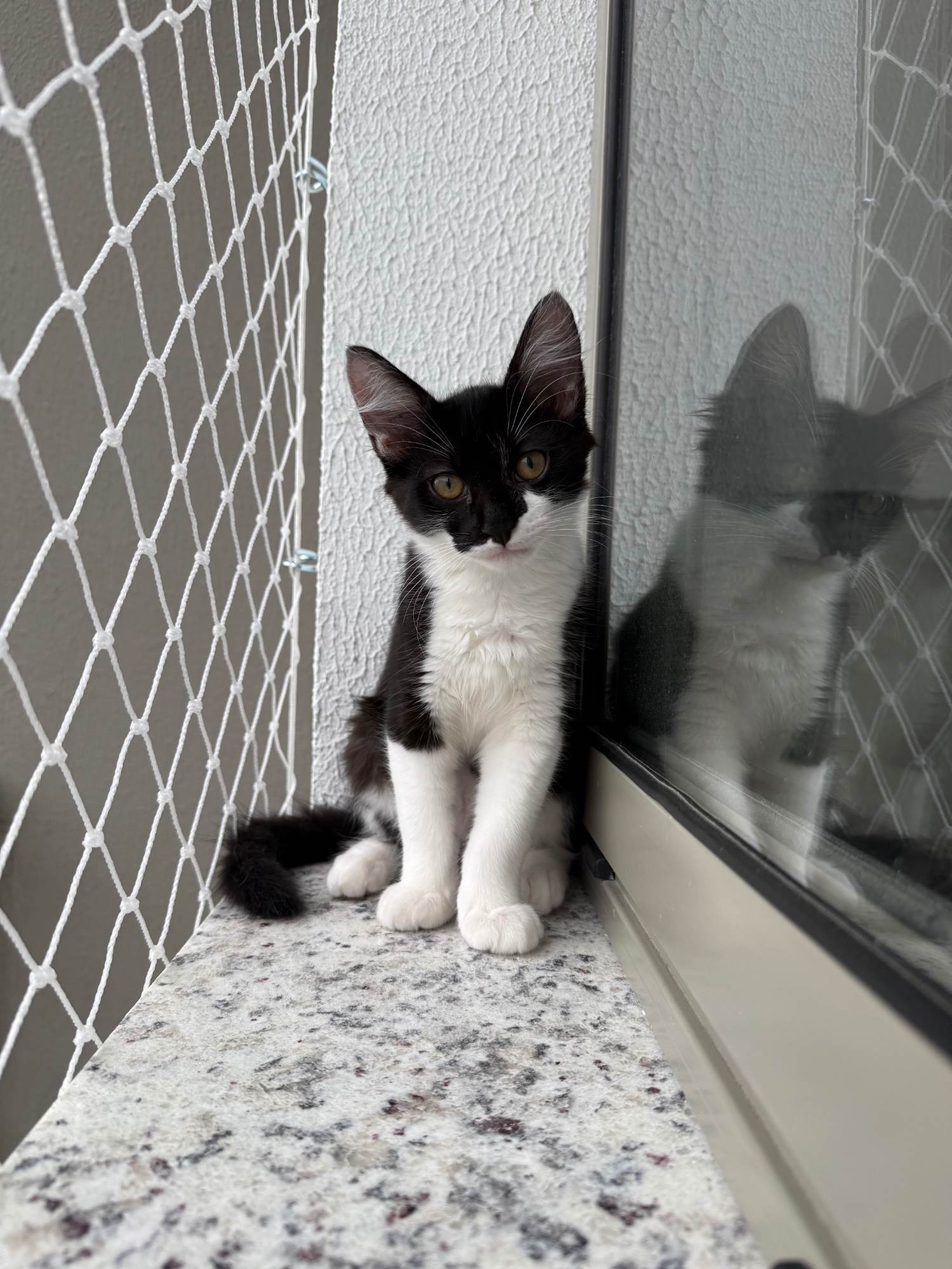 Gato pequeno, 2 a 6 meses, SRD-ViraLata, cor Branca/Preta.